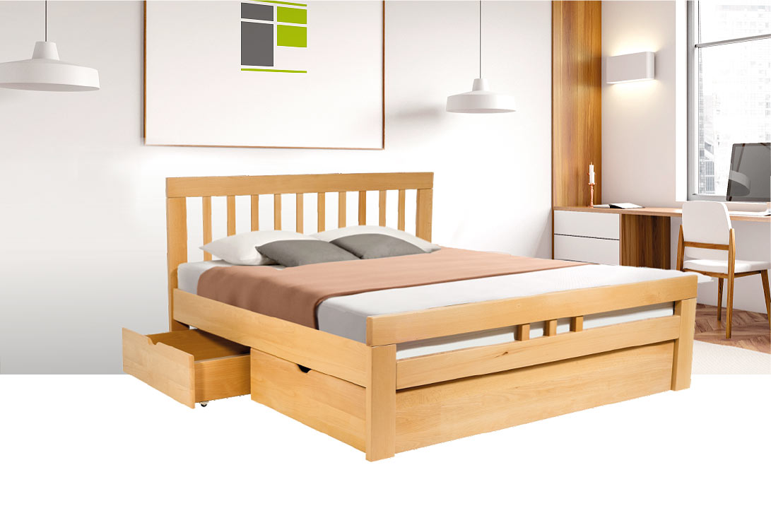K8 Double Bed, Drawers for Bedding, Footboard Cover